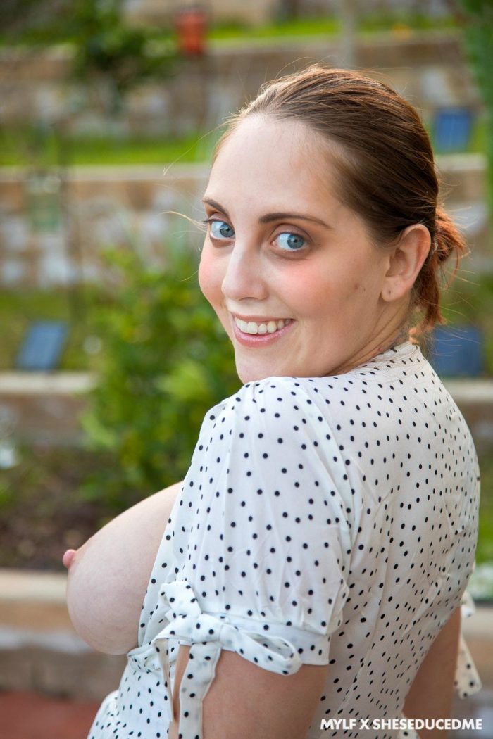 Brunette with big tits Nicky Huntsman shows off her hairy pussy