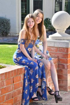 Cute lesbians Myra Glasford and Sylvie Sterling frolics together outside-01
